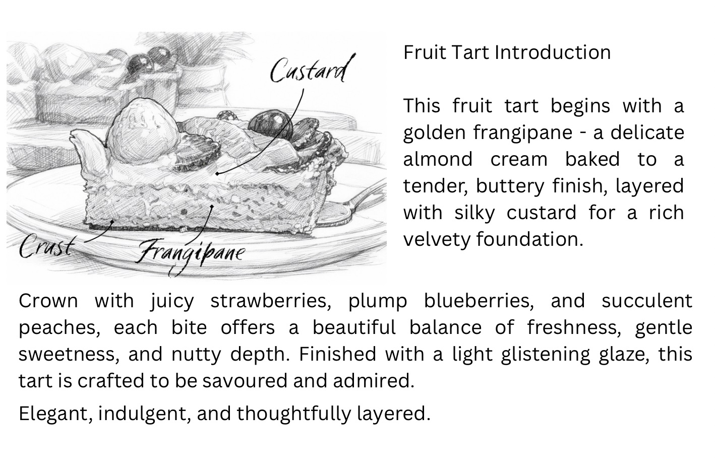 Indulge in the art of refined sweetness with our exquisite Fruit Tart, a perfect harmony of textures and flavors.